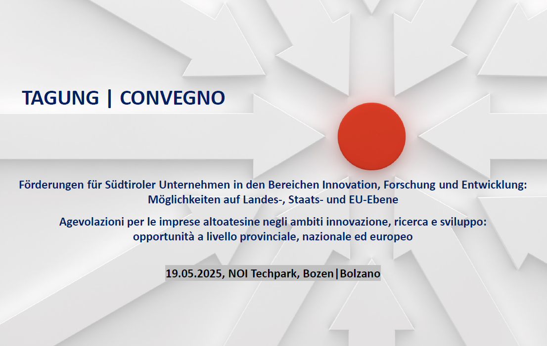 Convegno “Agevolazioni per le imprese altoatesine negli ambiti innovazione, ricerca e sviluppo: opportunità a livello provinciale, nazionale ed europeo”